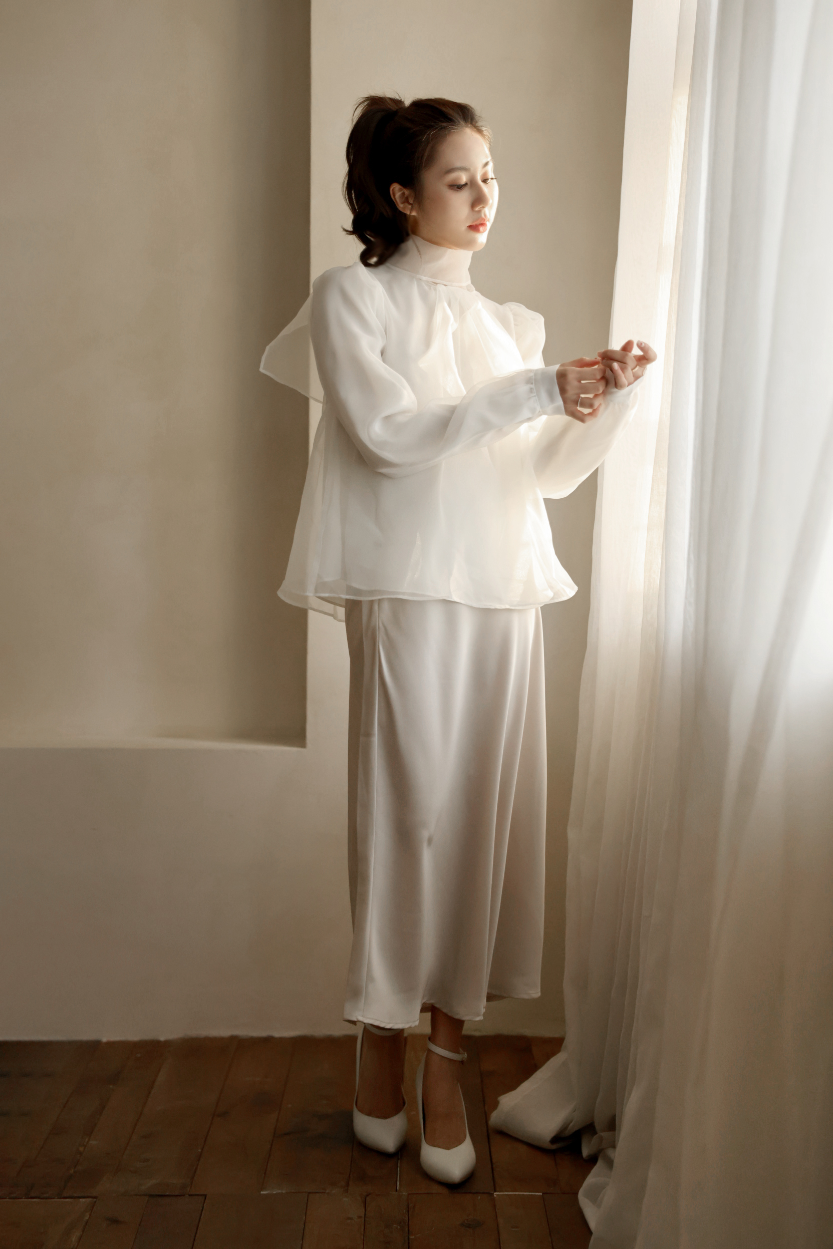 蝴蝶結雙層紗上衣—白|漫步佛羅倫斯2024SS