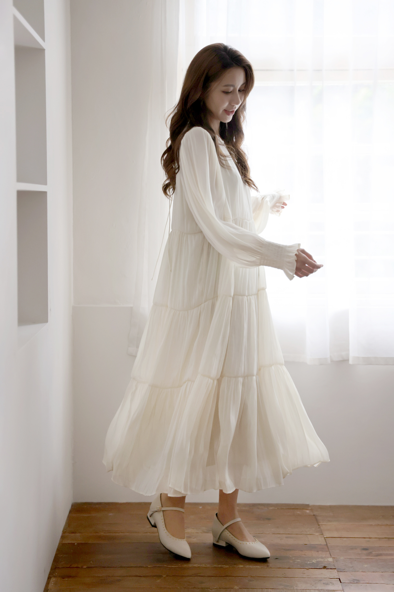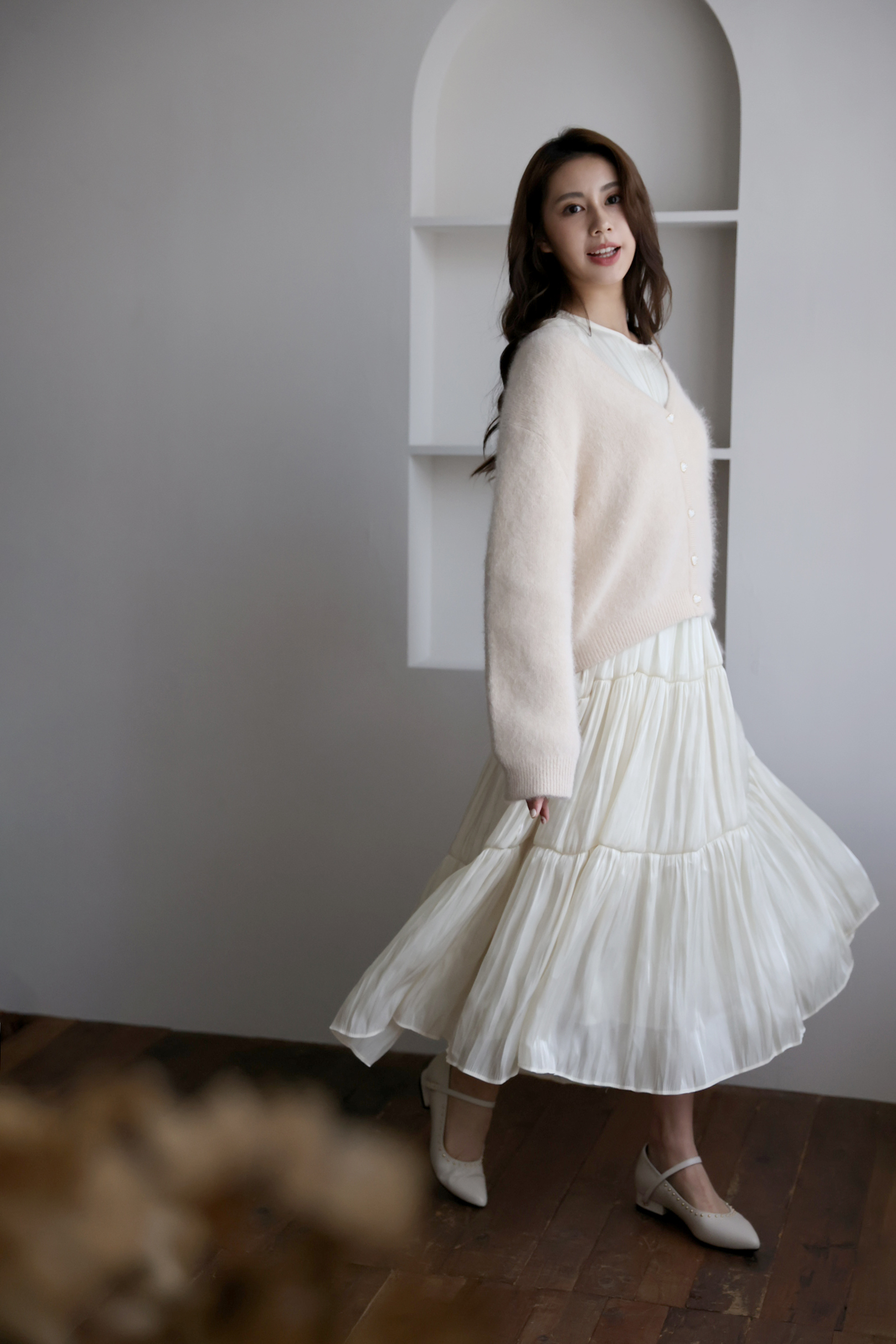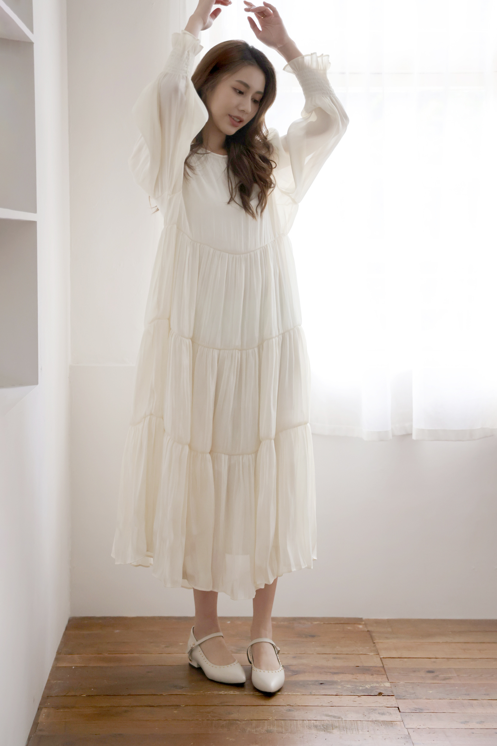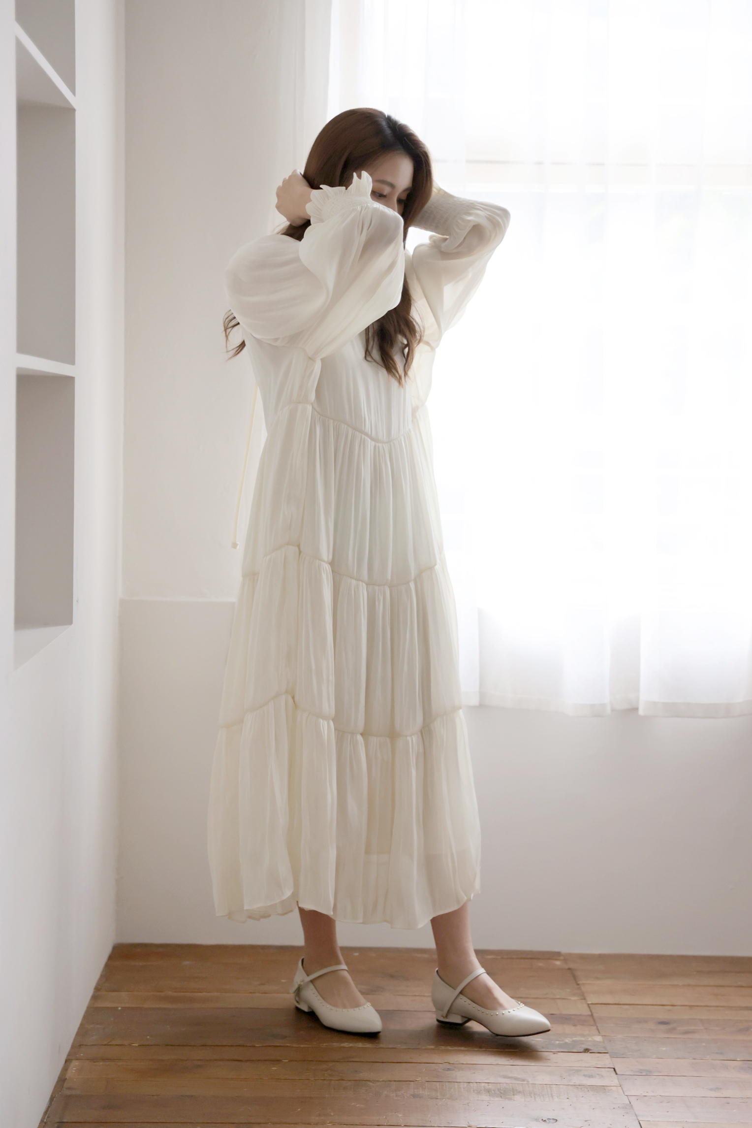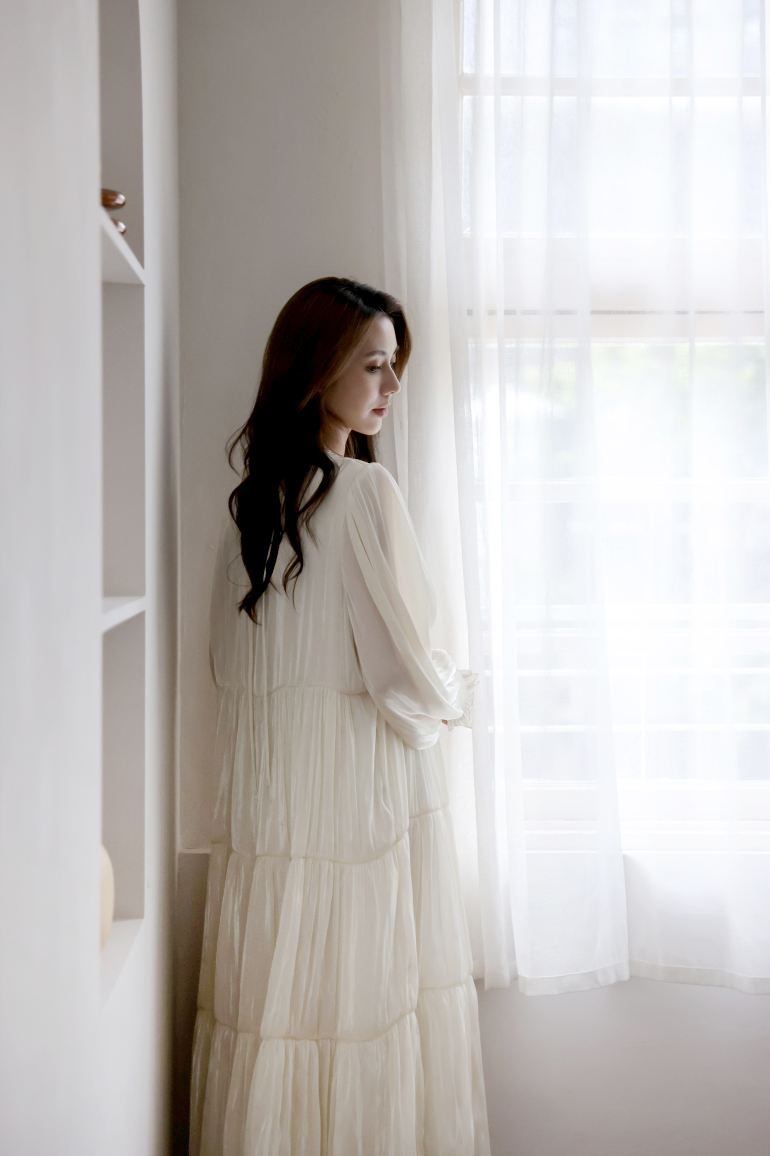 不同於快時尚透薄布料所製作的絲光布料往往軟薄無力,吸貼身形顯得大腹便便,甚至薄到透光顯內衣底褲。moobulous木子以厚磅頂級布料特製,含內襯,搖墜飄逸的同時亦有堅挺版型,比例顯瘦修身,絲光緞布在陽光底下更自帶低奢耀眼的折射光采。
