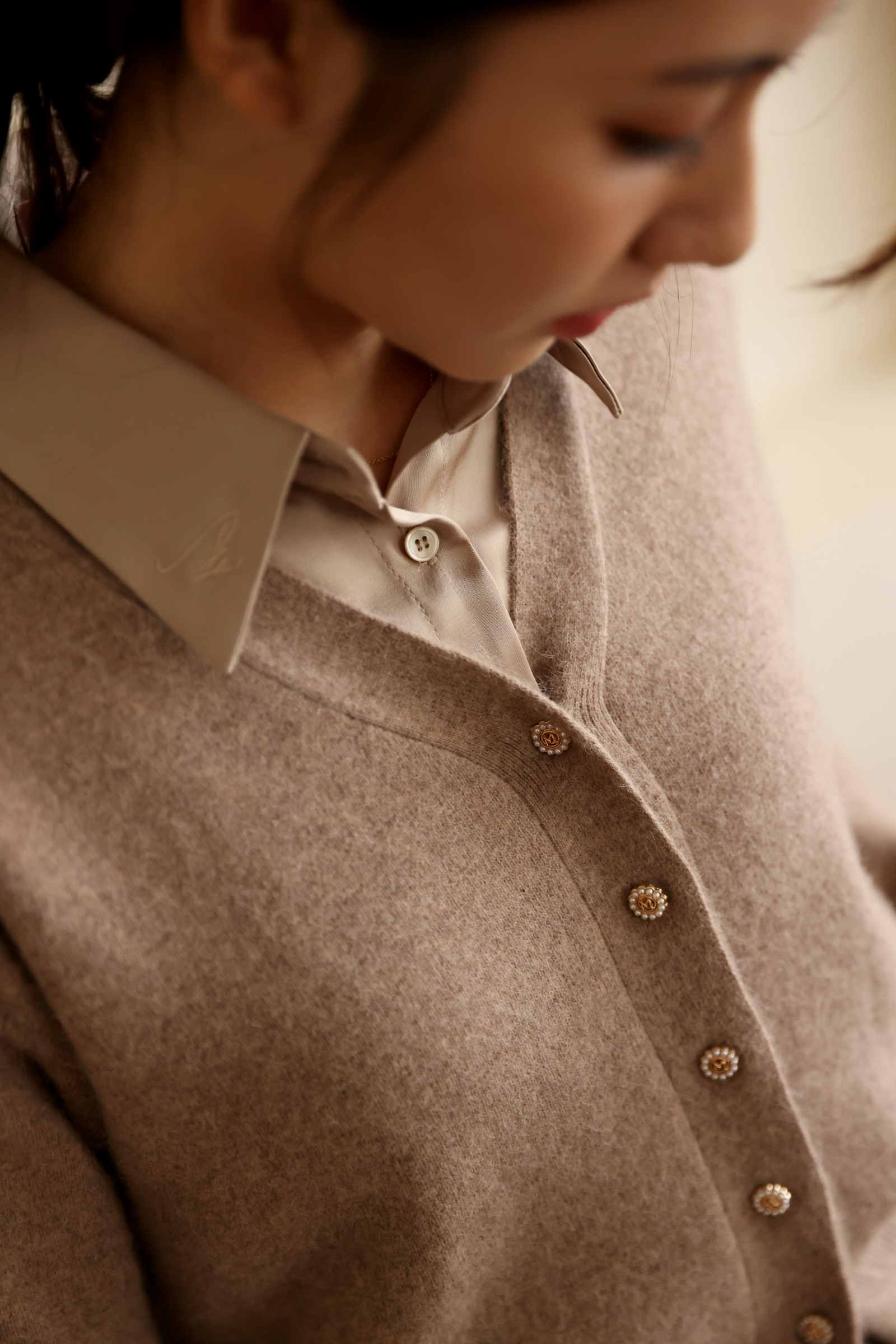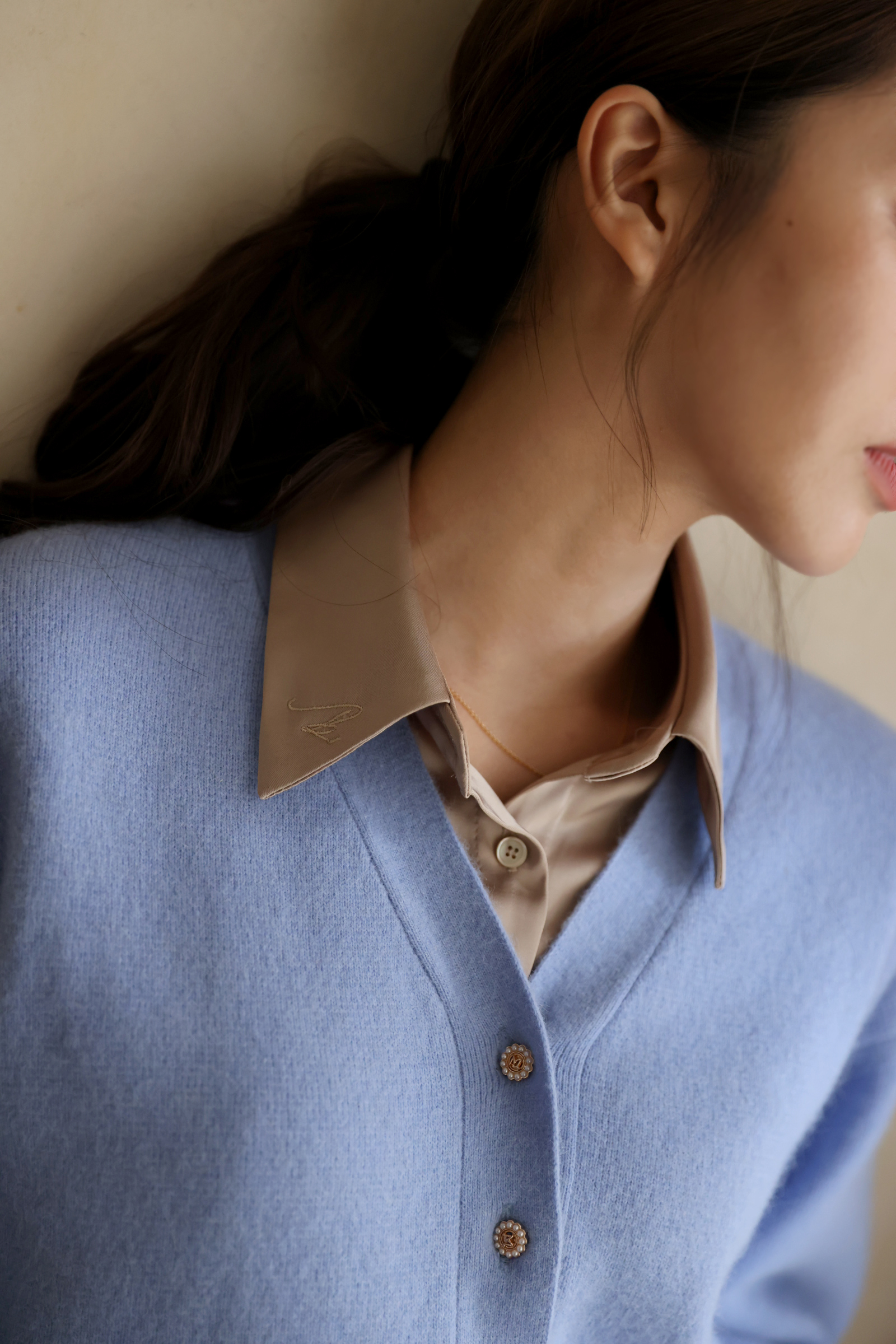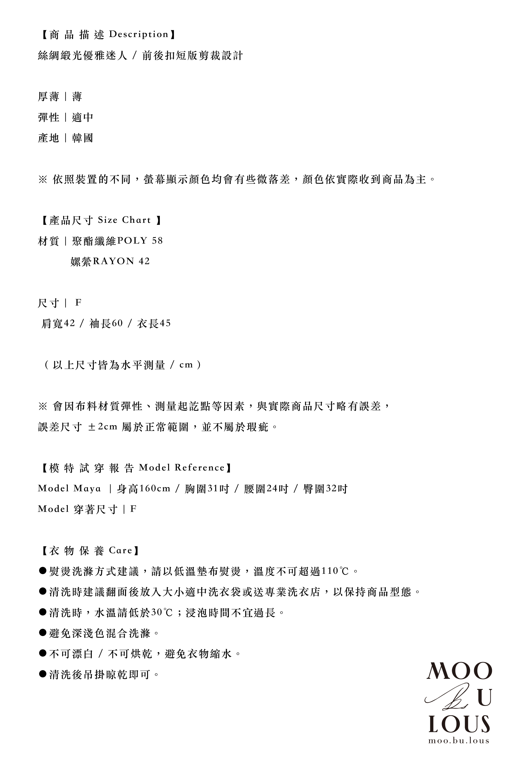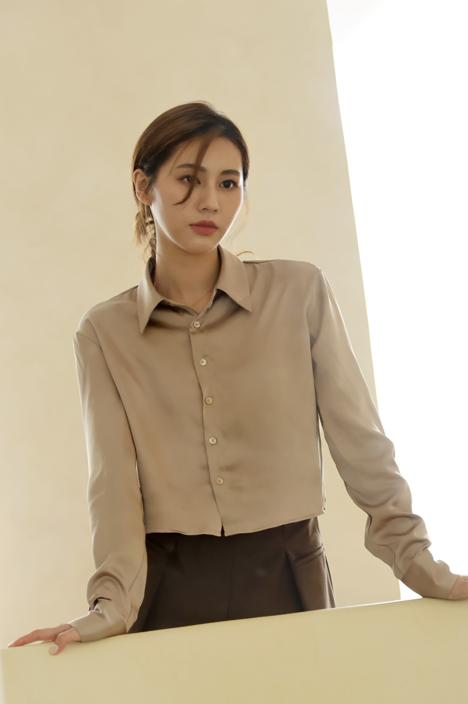 不同於快時尚透薄布料所製作的絲光襯衫往往軟薄無力,吸貼身形顯得大腹便便,甚至薄到透光顯內衣。moobulous木子以厚磅頂級布料特製,搖墜飄逸的同時亦有堅挺版型,比例顯瘦修身,絲光緞布在陽光底下更自帶低奢耀眼的折射光采。