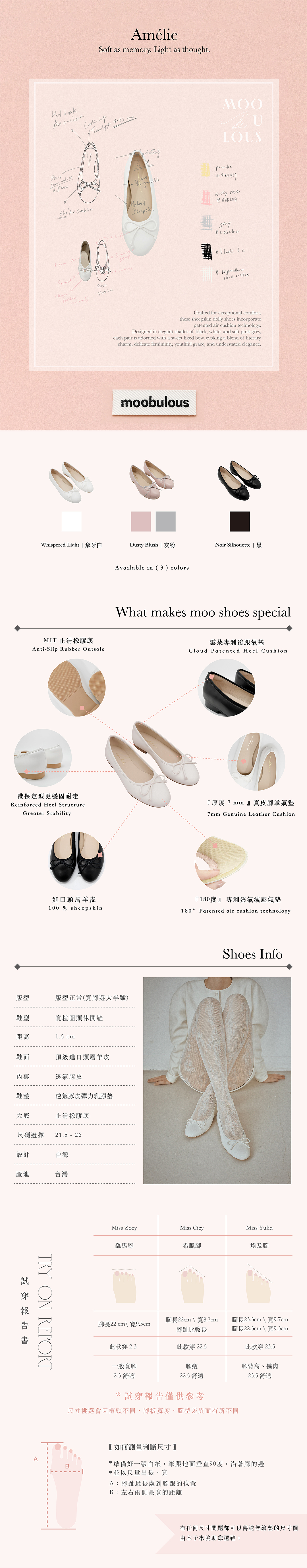Amélie手工羊皮娃娃鞋|粉灰色|MIT