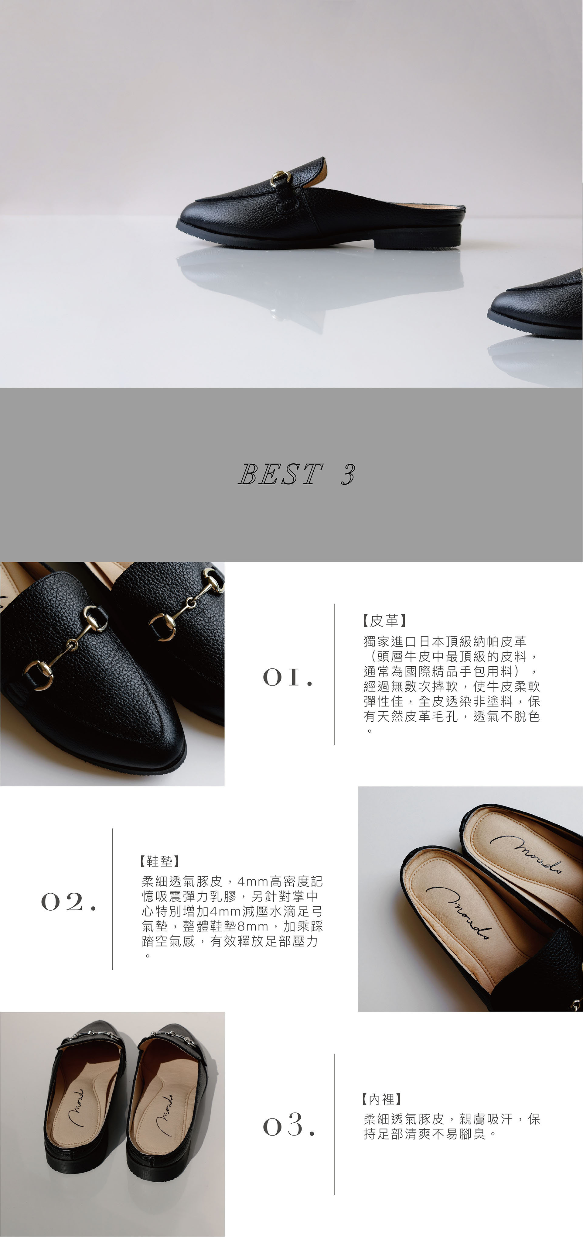 墨黑 樂福穆勒。日本頂級摔軟納帕牛皮 吸震減壓彈力足弓氣墊8mm