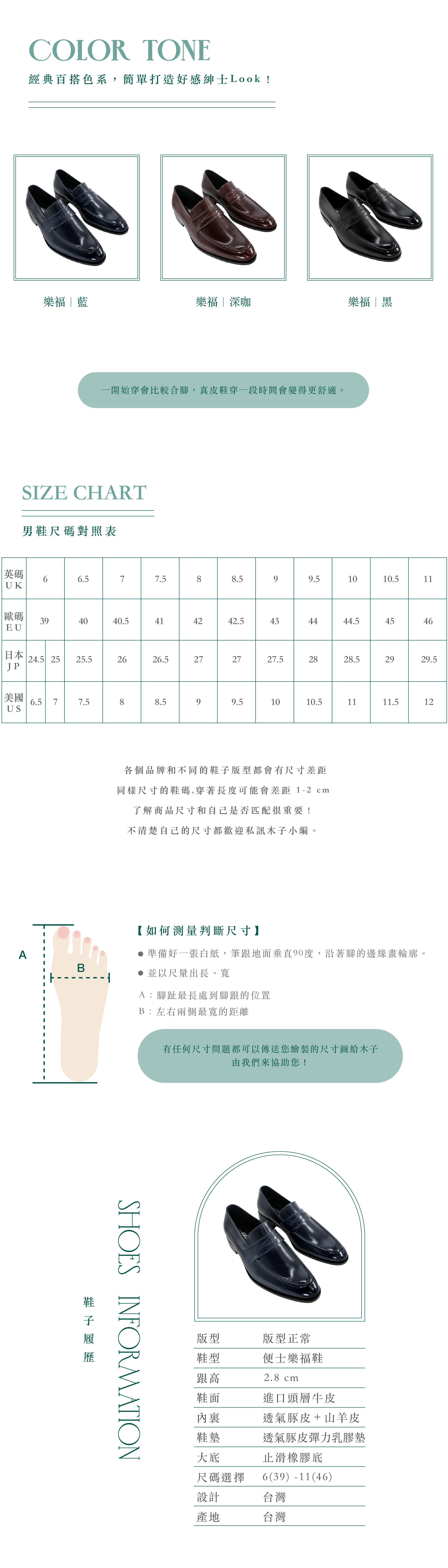 追求俐落、質感的商務人士,都該擁有一雙樂福鞋。以進口頭層牛皮製成,由台灣老師傅細心揉整、精準縫製,打造出極具質感的手工鞋款。5.5mm高彈力乳膠真皮鞋墊,提供卓越的緩震效果,同時保持透氣排濕,讓長時間穿著也能舒適自在。鞋面採用精緻的沖孔雕花設計,加上加厚手縫延邊,細膩拋光後的蠟光表面不僅耐磨,還能長久持色,展現出不凡的品味與成熟風範。無論是正式場合或日常搭配,都能輕鬆駕馭。