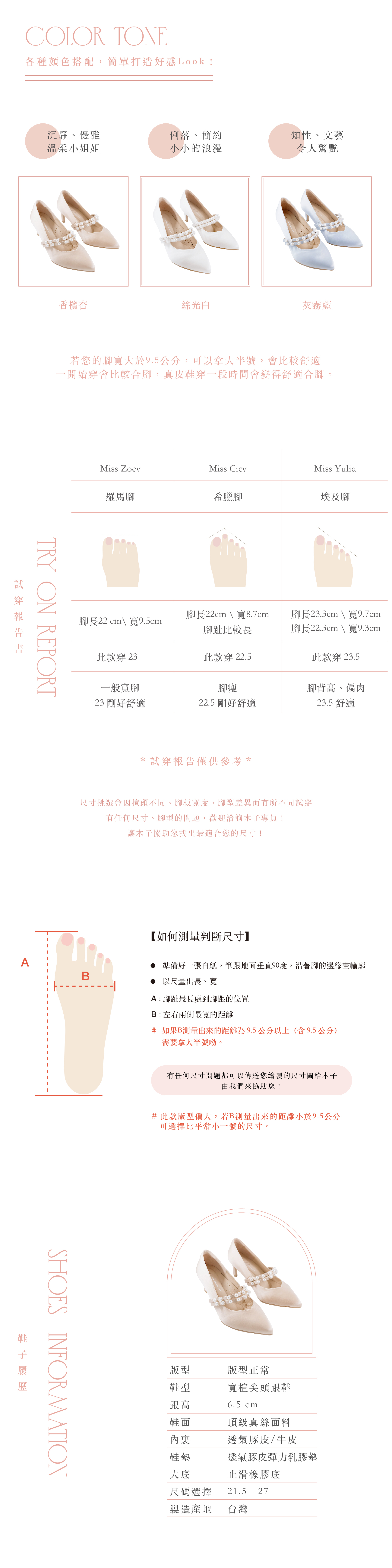 婚禮跟生活都不該妥協。婚鞋不該為了美遷就功能,買鞋也不該只為了滿足婚禮短暫精彩。真絲赫本小珍珠跟鞋,採用真蠶絲布鞋面,而非仿絲,對製作過程極為講究,為moobulous匠藝經典之作。不只真絲鞋面設計精美,全底氣墊、雲朵後跟、腳趾氣墊360度呵護雙腳,平時穿著上班也能在舒適中找到屬於妳的優雅。