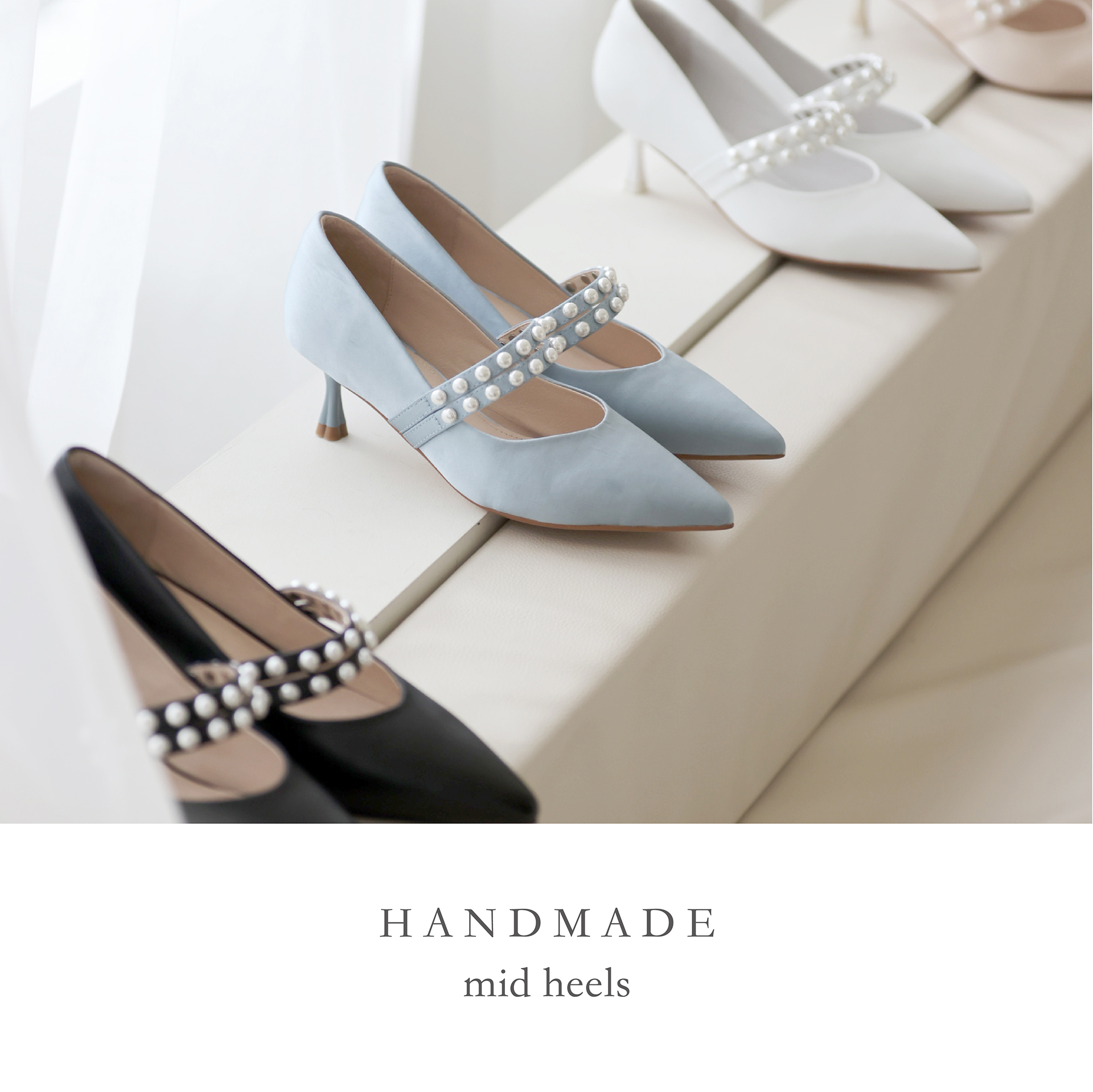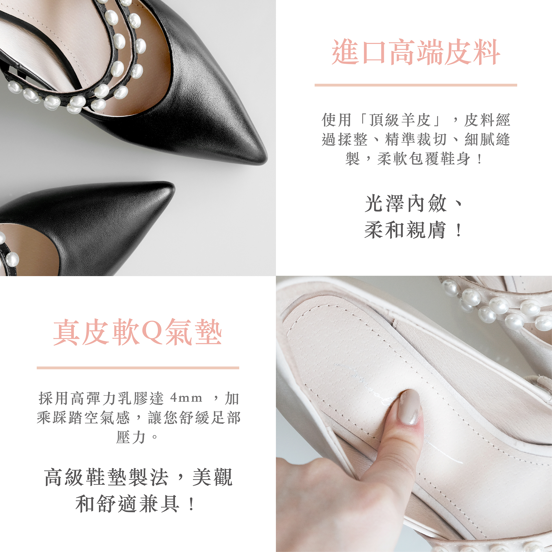 赫本小珍珠羊皮跟鞋 - 雪白