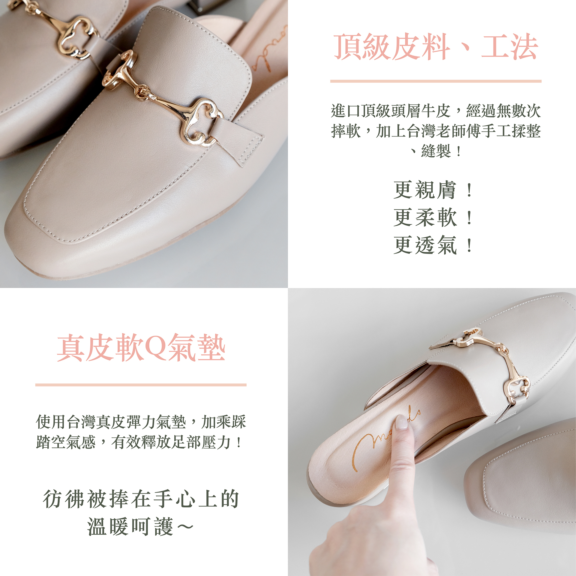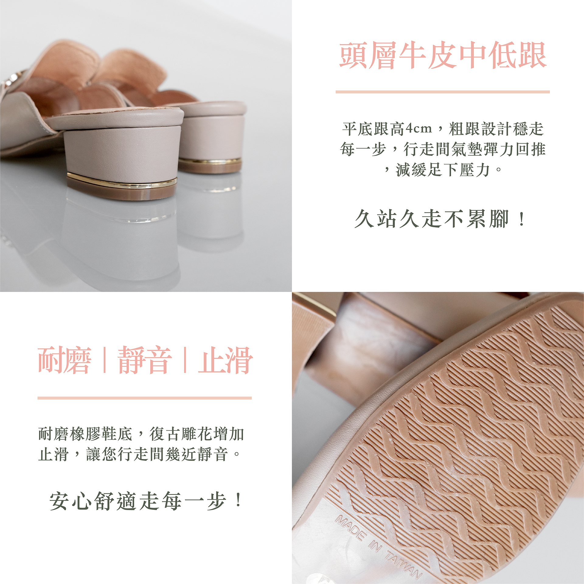 為尋求舒適與時尚的您打造——全新寬楦牛皮輕量級拖鞋,搭載加強版Q柔彈力氣墊,全面提升行走體驗。獨家超包覆版型,有效消除傳統拖鞋常有的掉腳感及拖腳感,讓每一步都輕鬆自如,支撐力十足。專為現代女性設計,融合時尚與實用於一身,每一步都顯得格外優雅。