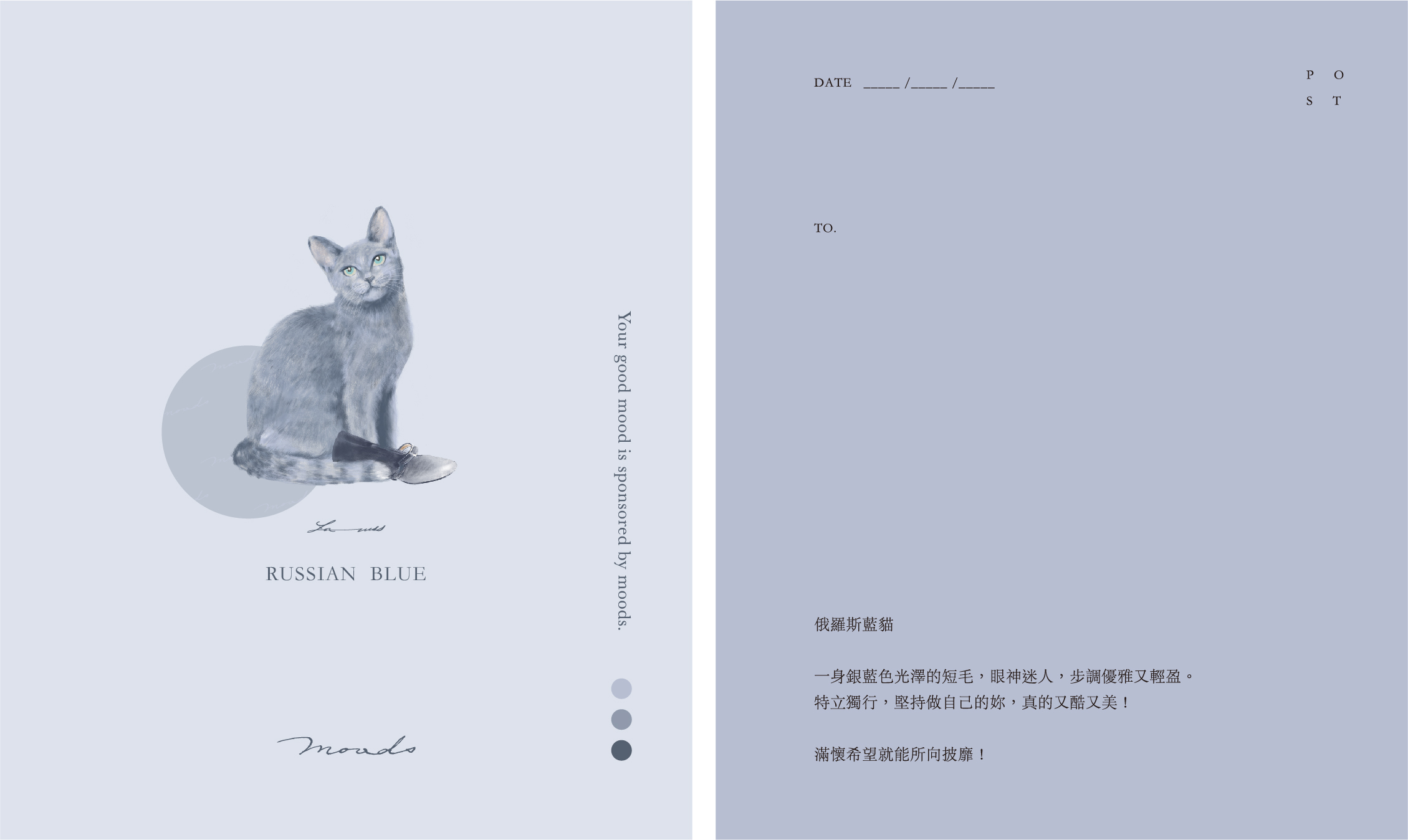 設計靈感是來自俄羅斯藍貓🐈,毛色在光影的變化下,高貴的銀灰色及優雅的霧霾藍彼此相互透映,交幻出如銀河般的銀藍星光🌌