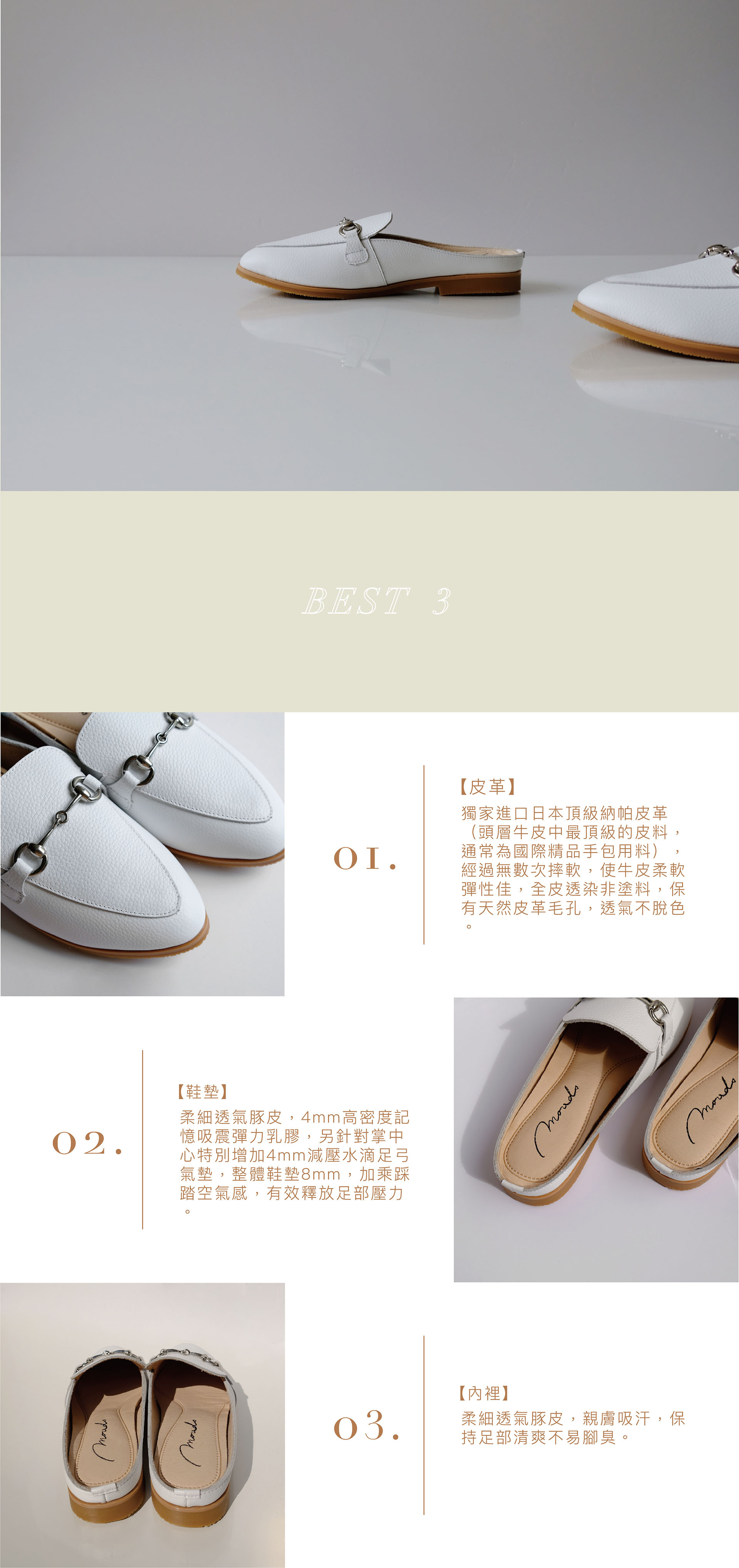 棉白 樂福穆勒。日本頂級摔軟納帕牛皮 吸震減壓彈力足弓氣墊8mm