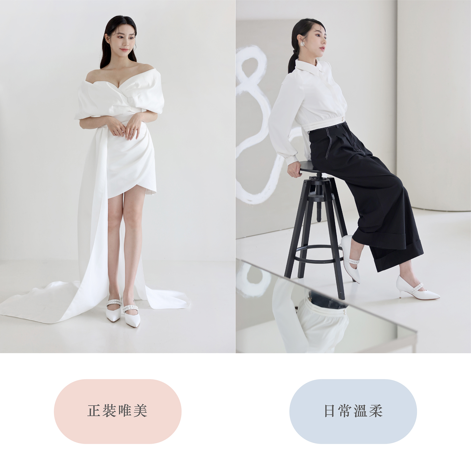 牛皮-赫本小珍珠跟鞋|珍珠白 。MIT