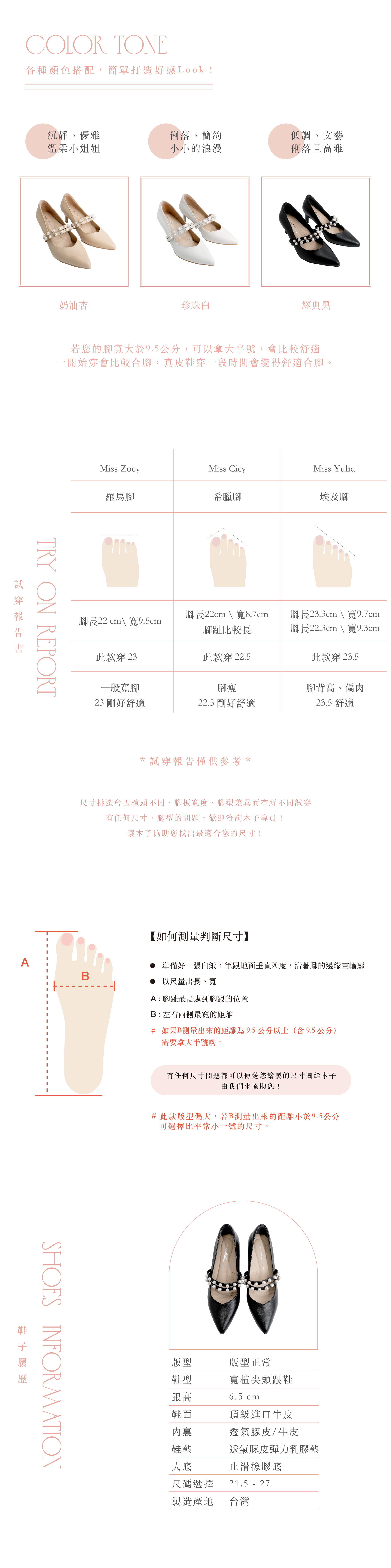 牛皮赫本小珍珠跟鞋,採用進口牛皮打造,由老師傅手工揉整、裁切皮料,製作過程充滿匠藝手感溫潤質感,不只用料、作工紮實,全底氣墊、雲朵後跟、腳趾氣墊360度呵護雙腳,平時穿著上班也能在舒適中找到屬於妳的優雅。