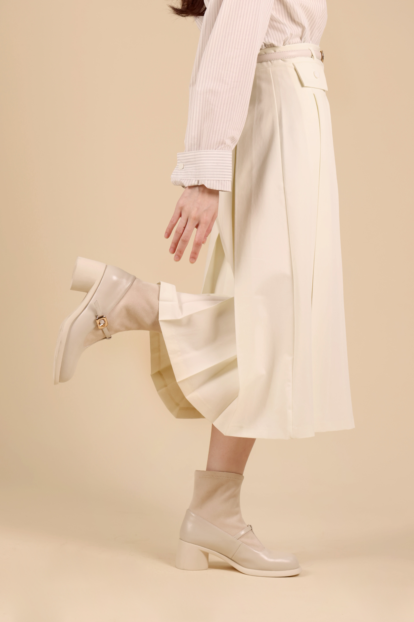 隨性跟優雅也能共存,打造妳的自在生活美學。「拼接絨布襪靴」採用進口皮革與彈力布巧妙結合,經老師傅細膩揉整與縫製,打造出高質感的柔軟包覆感。3mm真皮彈力氣墊讓每一步都輕盈舒適,猶如行走在雲端,帶來悠然自在的穿著體驗。彈力布襪靴設計讓穿脫更加隨性自然,套上即走,輕鬆融入日常步調。5.5cm粗跟穩固而修身,搭配止滑耐震鞋底,無論日常通勤或閒適出遊,都能陪伴妳隨性出發,展現自在魅力。