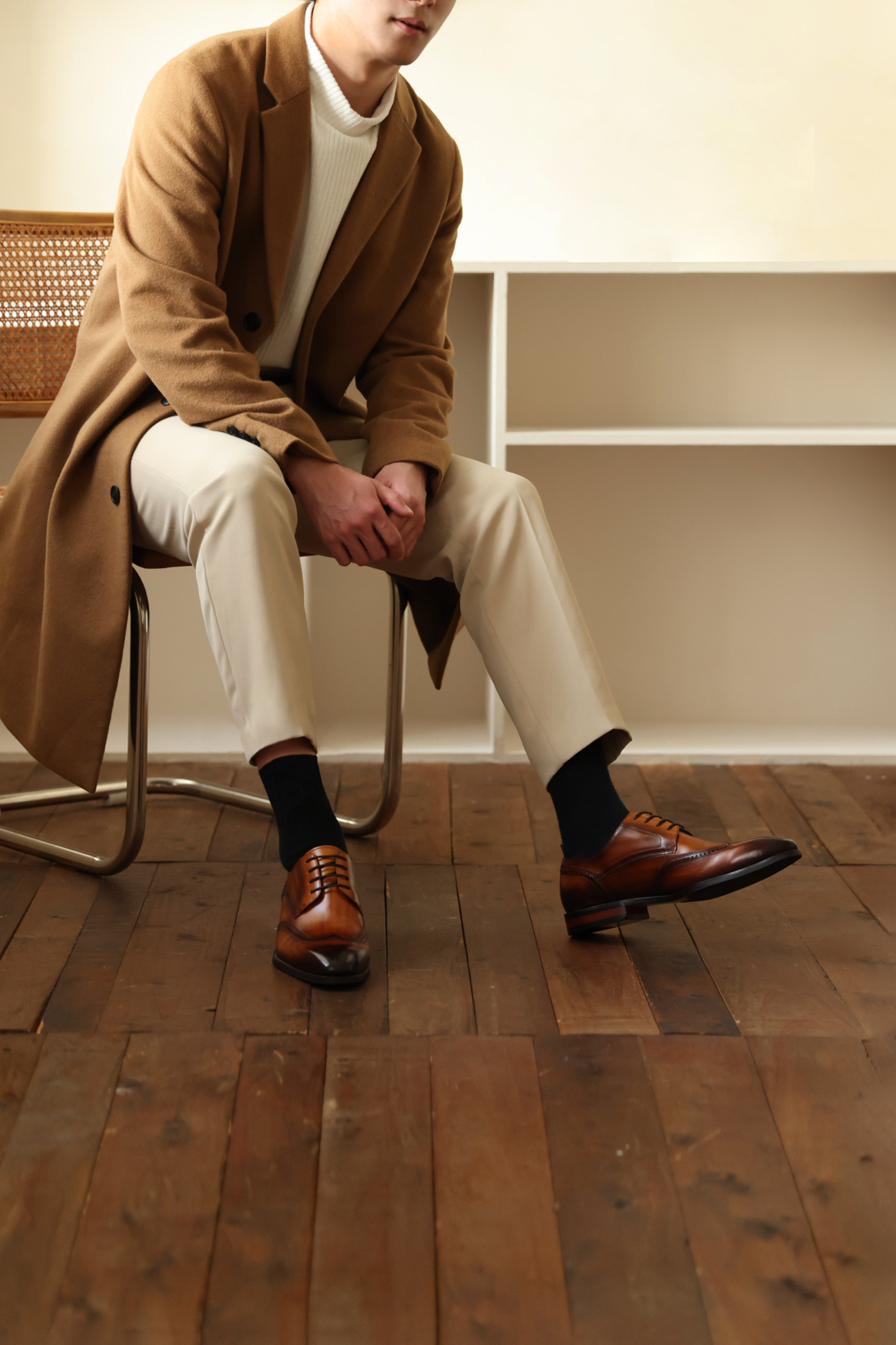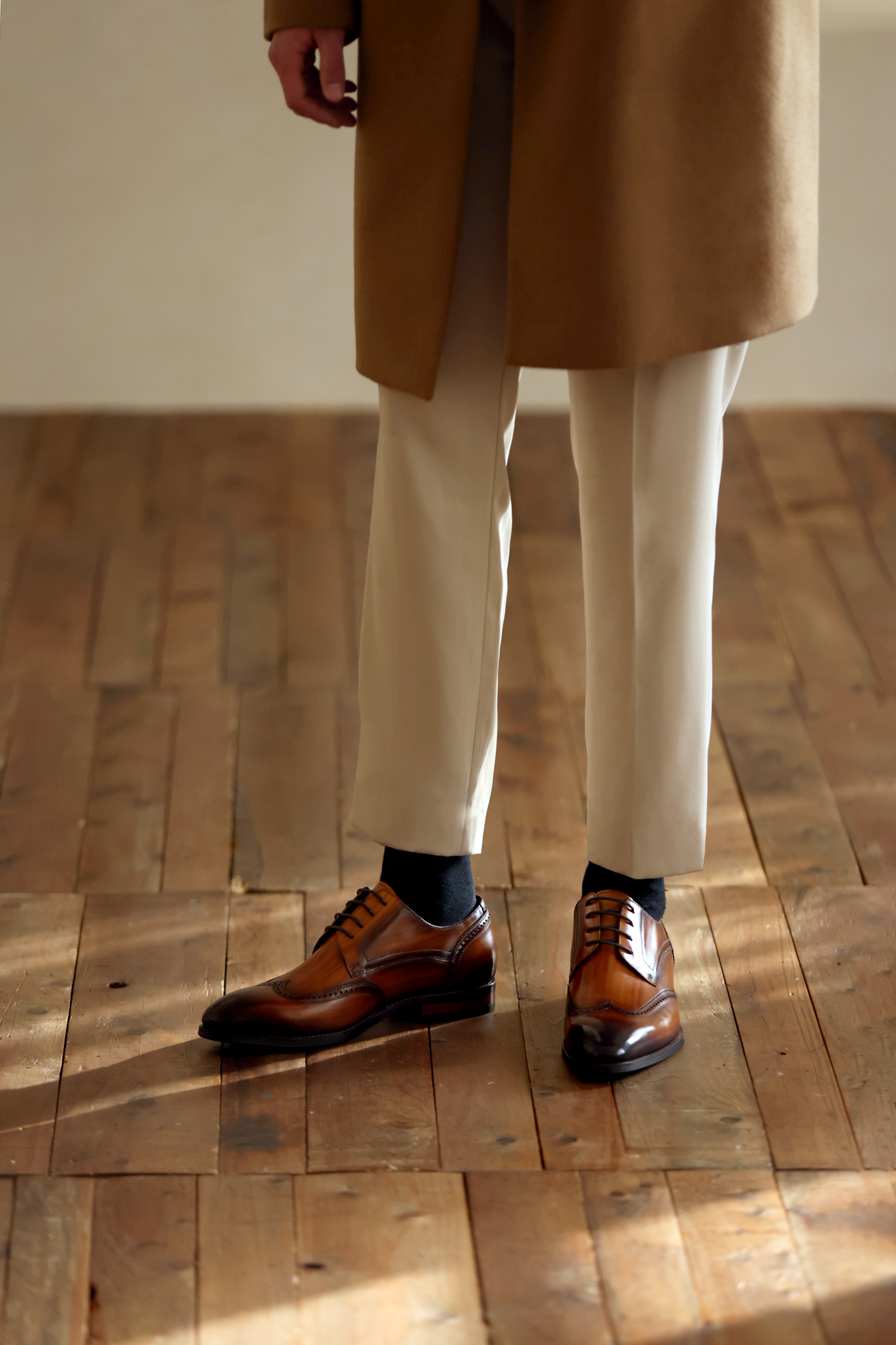 moo-men翼紋雕花手工德比鞋 | 焦糖棕
